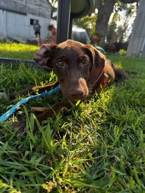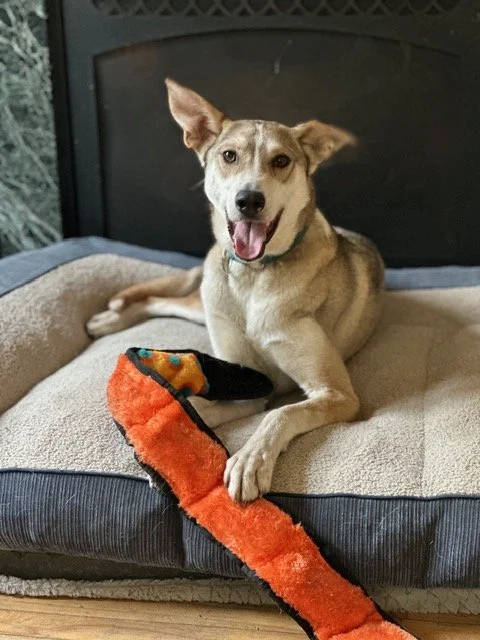 This pup is all independence with a bit of spunk. He is in charge of all the toys and loves playing keep away with his new dog friends. Surprisingly “herdy” he will stalk and freeze while playing. We’re hoping for great things with this new addition!